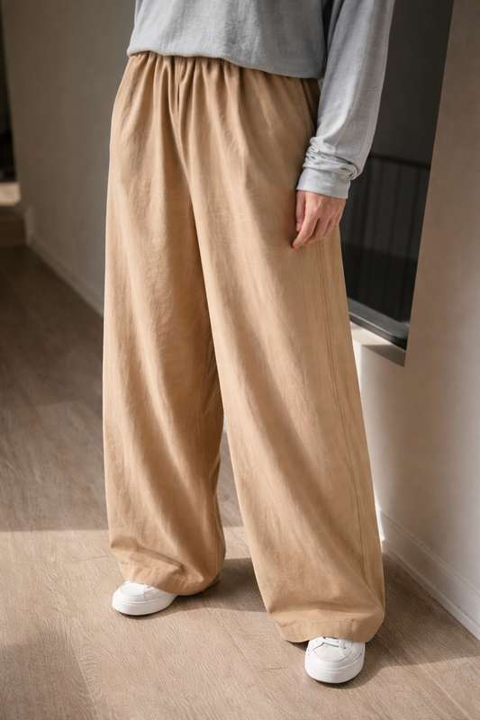 Khaki Cotton Wide Leg Parachute Pants