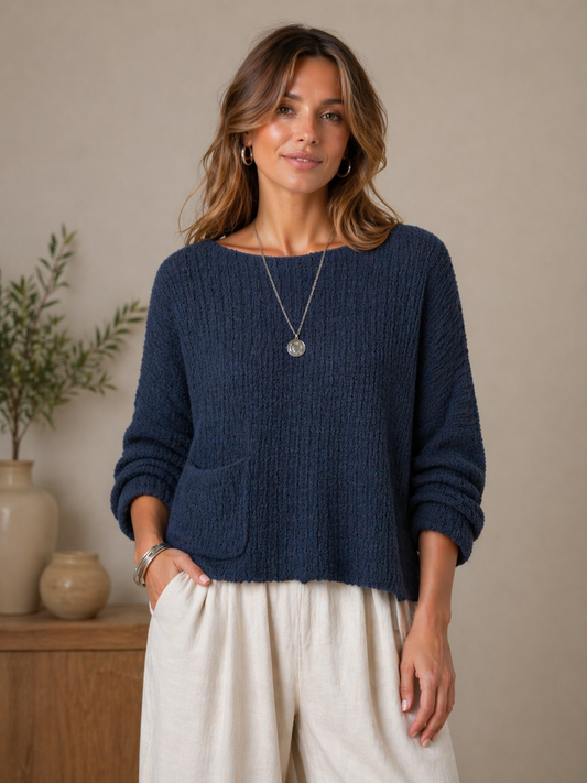 Textured Knit Pocket Pullover