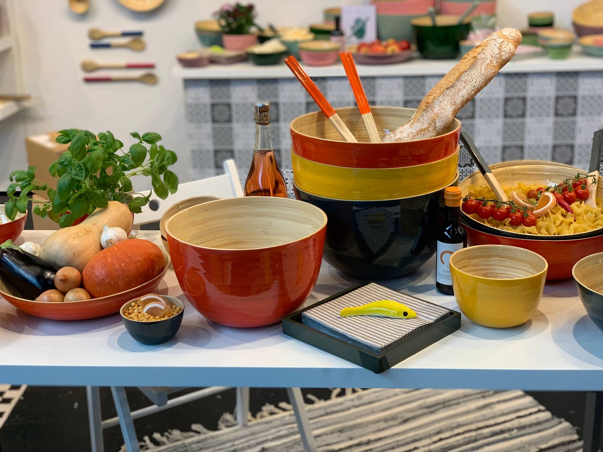 All of our Bamboo items are completely food-safe, and are great to use with Salad, Pasta, Soups, Popcorn, etc. Our bamboo products are very durable, and are great to use for indoor and outdoor dining, recreational vehicles, and boats!