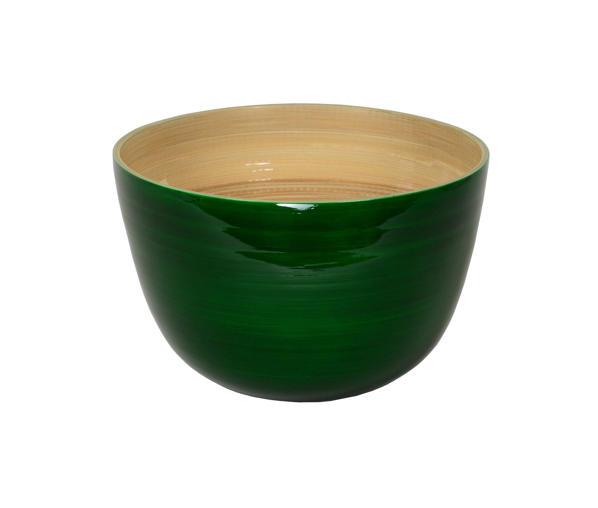 Bamboo Serving Bowl - size: 8.6" X 5.5". Food safe. Handmade in Vietnam. Part of our "Classic" line. Formerly the Medium Tall Bowl. Our serving bowl is perfect for serving salads for a family of 3-4, as a popcorn bowl, or to serve pasta!
