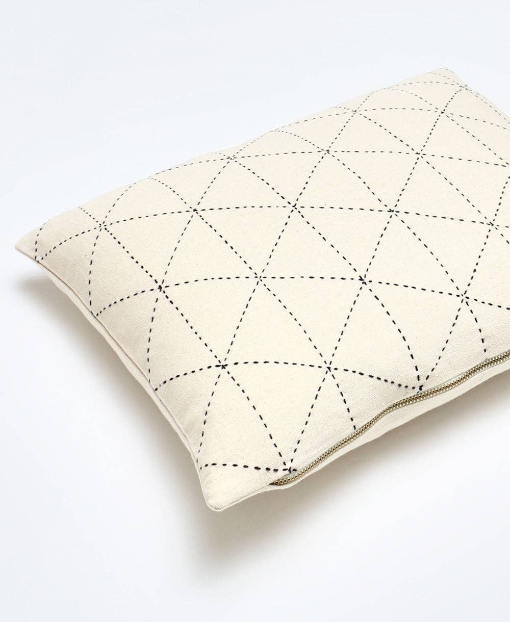 This small charming accent pillow makes a bold, yet playful design statement with its intersecting stitching. Made with buttery soft organic cotton, accent any bed, sofa or chair with this decorative pillow. Down feather insert sold separately.