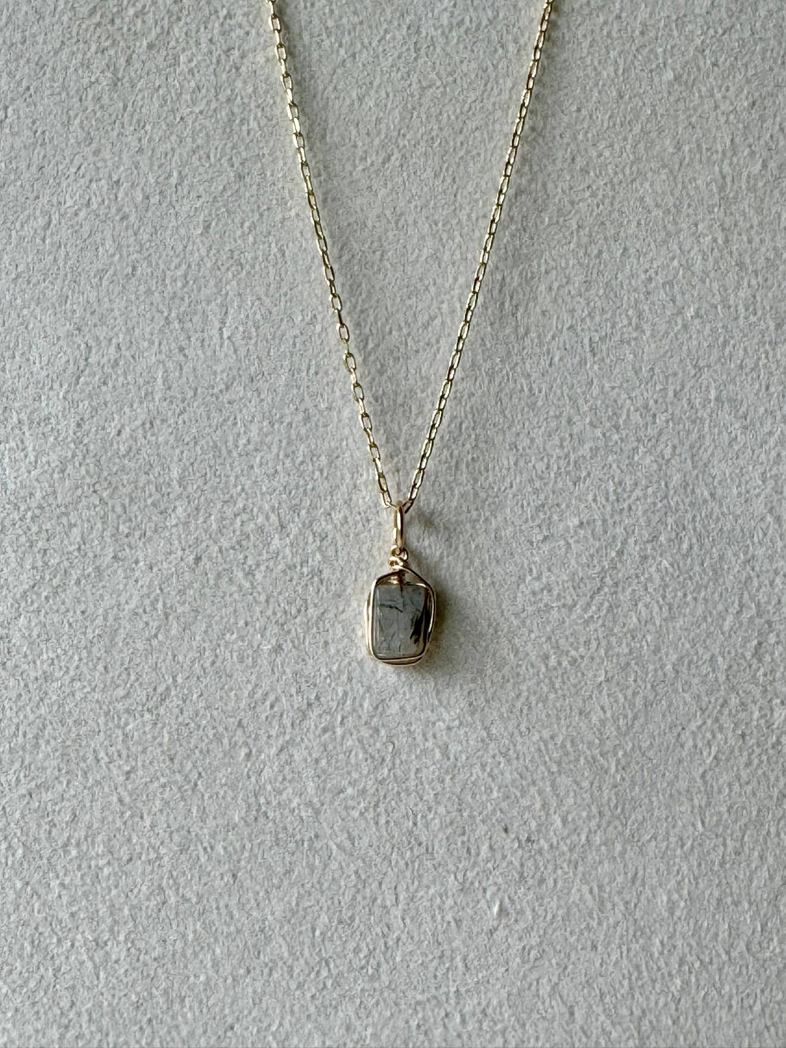 Elevate your jewelry collection with this exquisite dainty necklace. Crafted with a square natural rutilated quartz stone, each piece is unique and hand wire-wrapped in 14k gold. The pendant delicately hangs from a sleek and sturdy 14k gold-filled chain, creating an elegant and timeless piece that will add a touch of sophistication to any outfit.