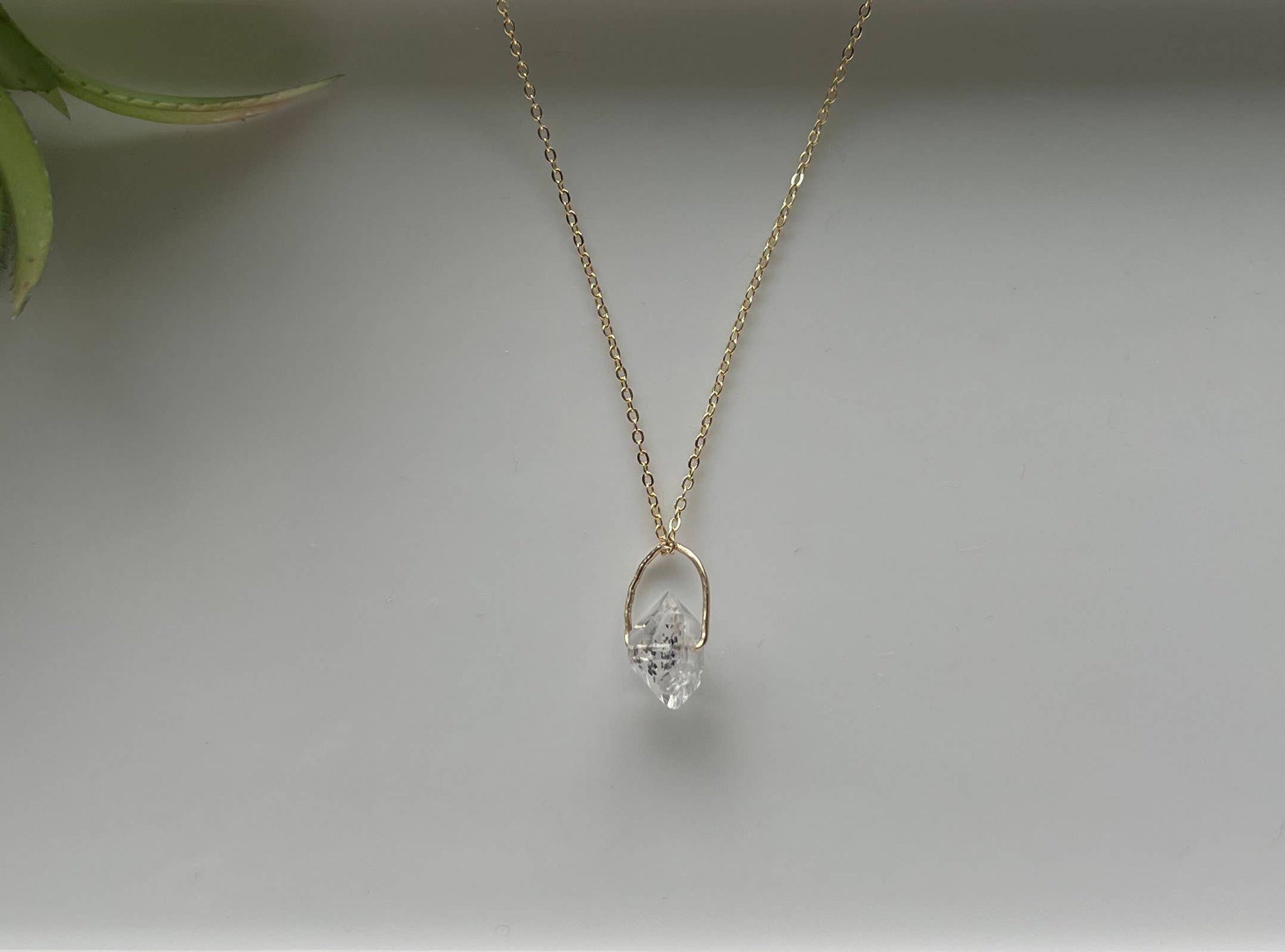 Long Raw Herkimer Diamond / Horseshoe Pendant / Cinched Stone Pendant / Raw Diamond Necklace / Raw Gemstone / Long Gold Layering / Raw Stone