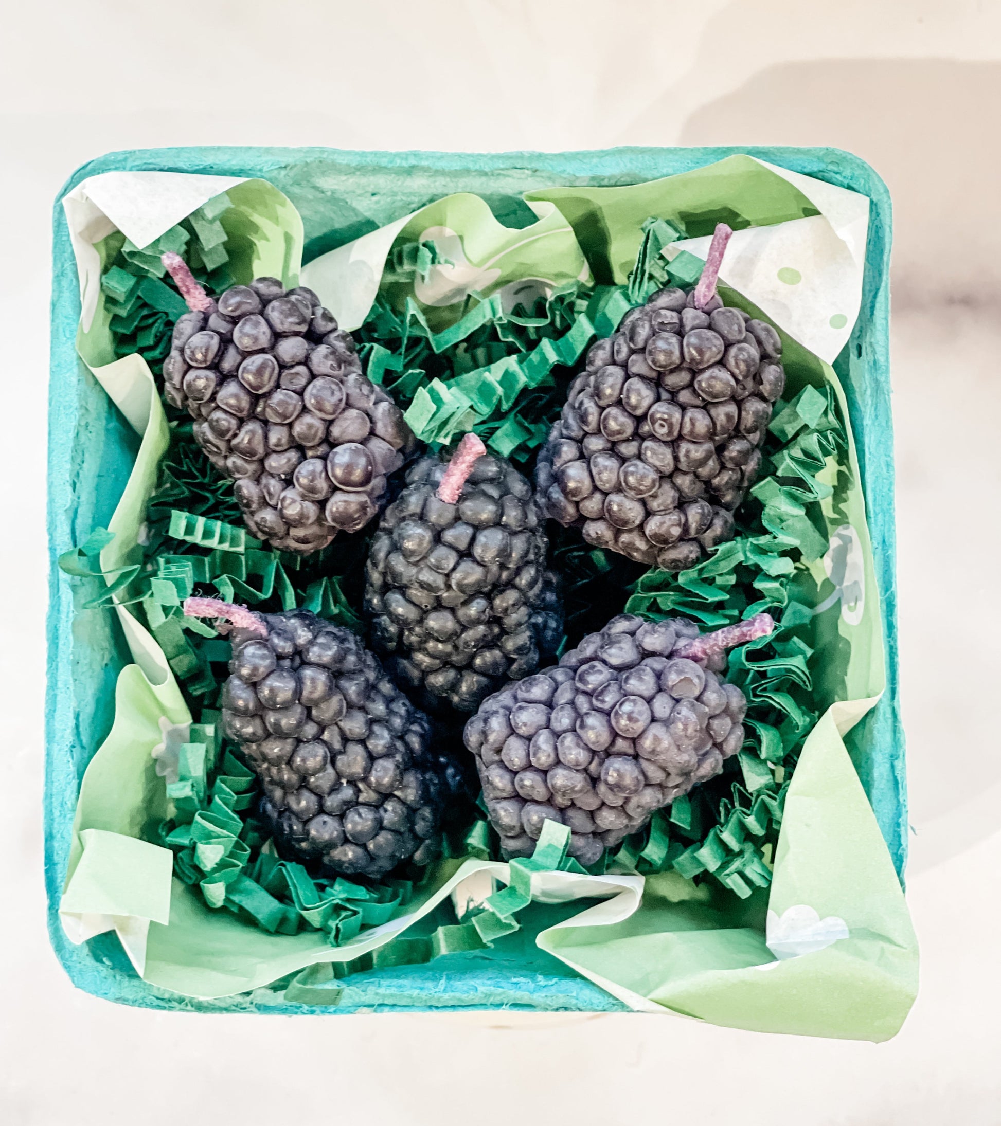 Embrace the charm of our Blackberry-Shaped Beeswax Birthday Candles, meticulously handcrafted from wax sourced from our 3rd generation beekeeping farm in Merced, CA. These adorable, detailed blackberries, cast in the warm, natural glow of beeswax, will add an irresistible touch to your celebrations. Experience our family's passion and dedication, encapsulated in these delightful, tiny, illuminating pieces of art!