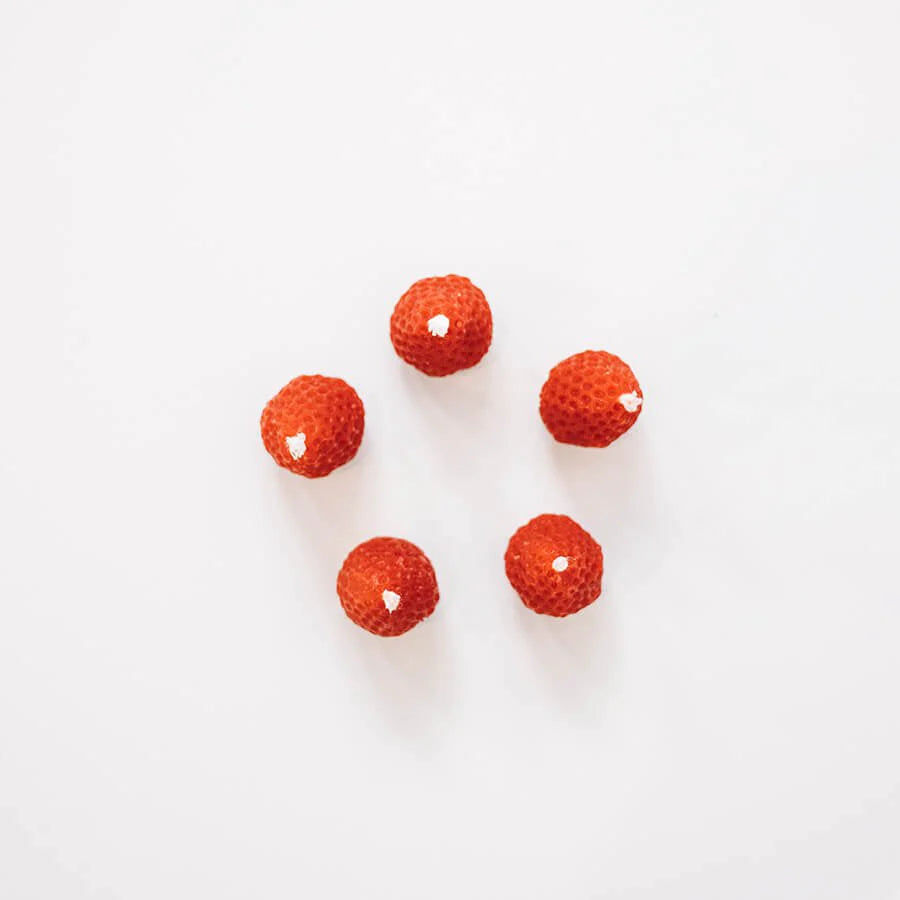 Our Strawberry Birthday Candles are crafted with pure beeswax from third-generation family-owned beekeepers in Merced, CA. We shape each candle using molds cast from real strawberries from Stockton, CA. These candles are more than just candles; they celebrate family tradition, the beauty of nature, and the sweet anticipation of another fruitful year. Illuminate your special moments with warmth, nostalgia, and cuteness!