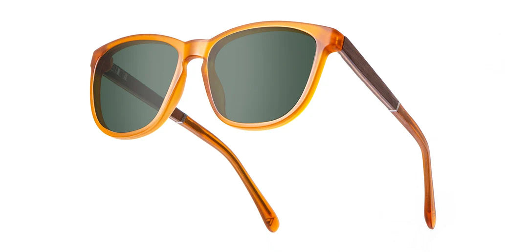 Sustainable “Camp” sunglasses by Shwood, crafted in Portland. Eco-friendly materials meet timeless outdoor style and UV protection.