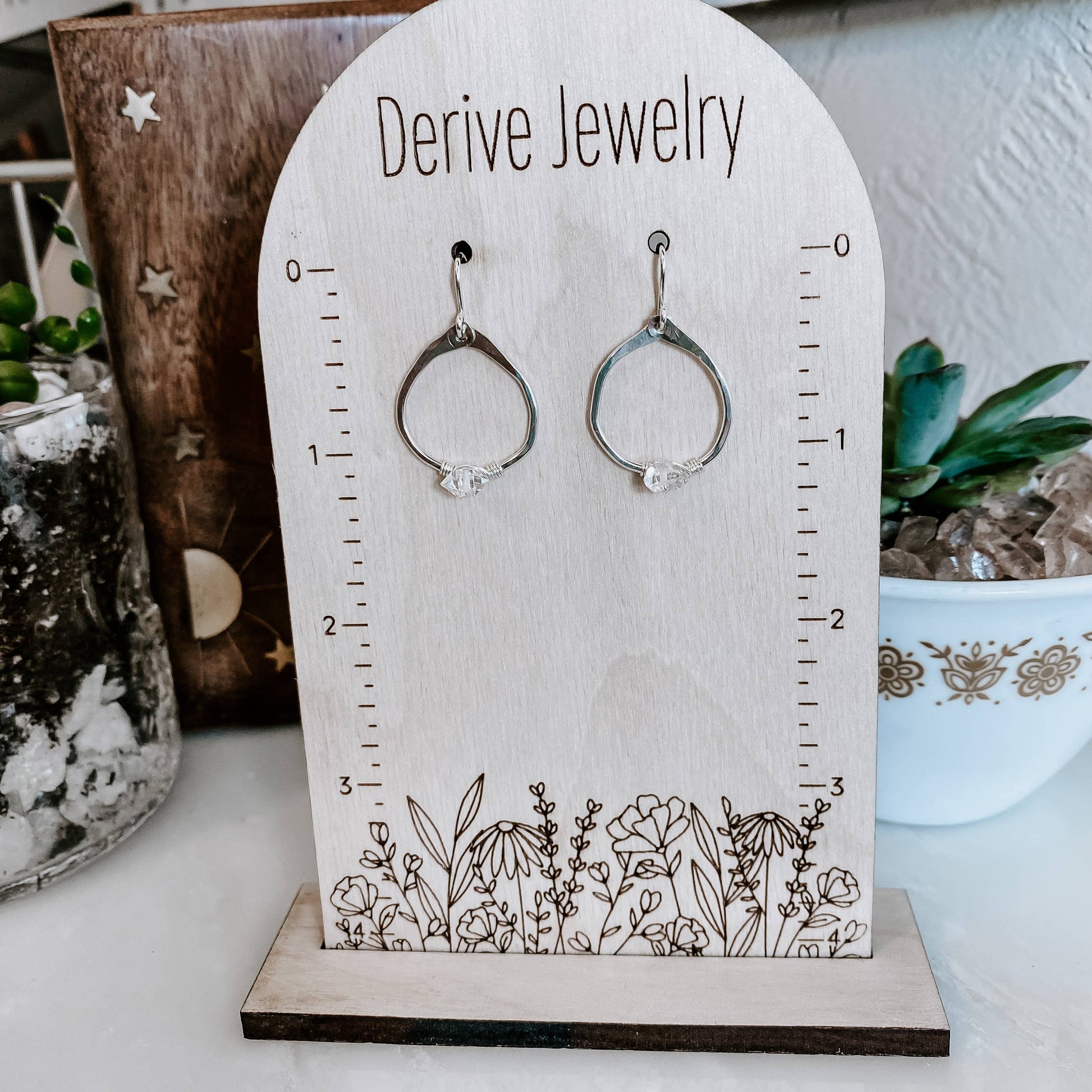 All Derive Jewelry comes on a branded card back. Earrings come with rubber stoppers. Hypoallergenic, waterproof and nickel free.