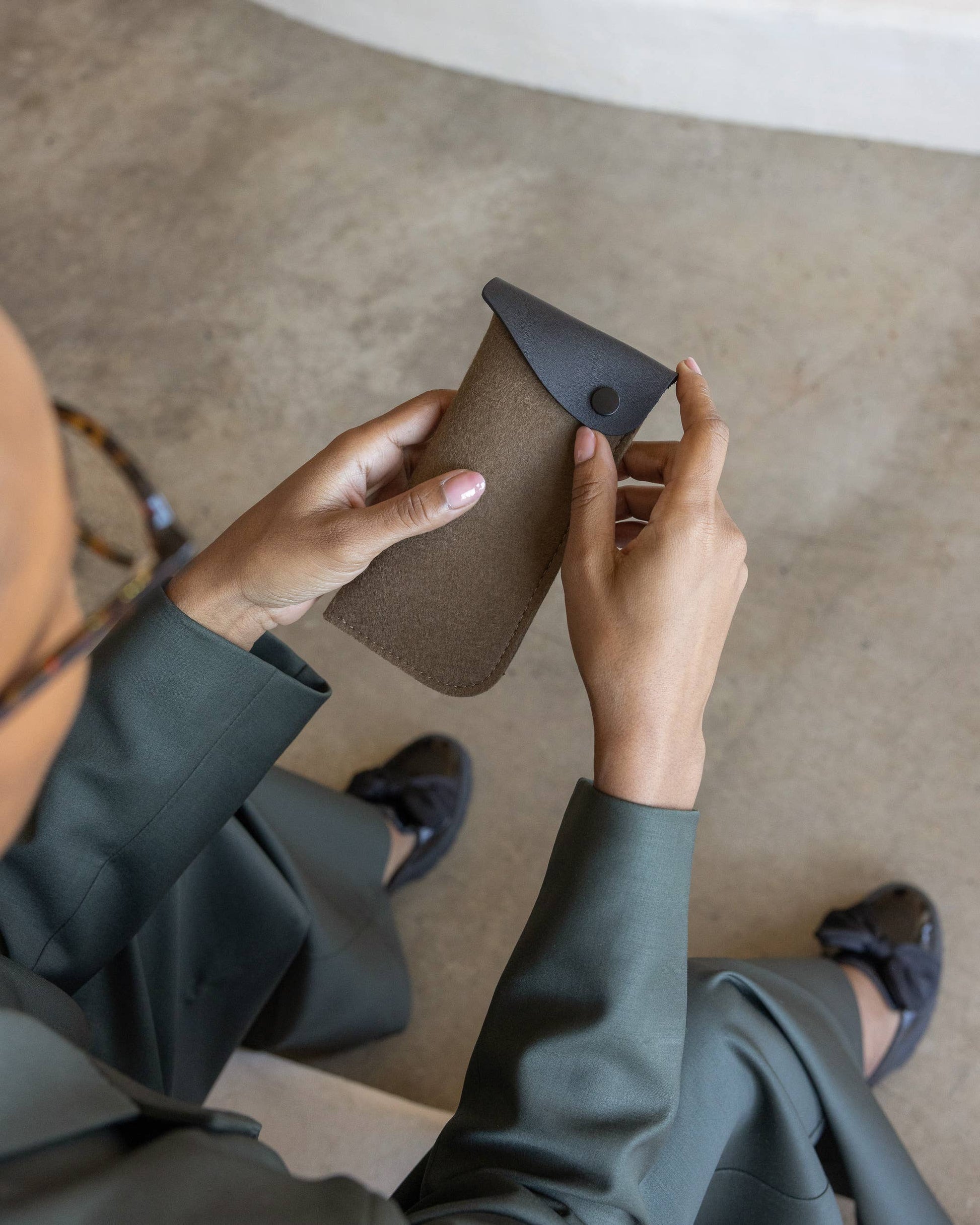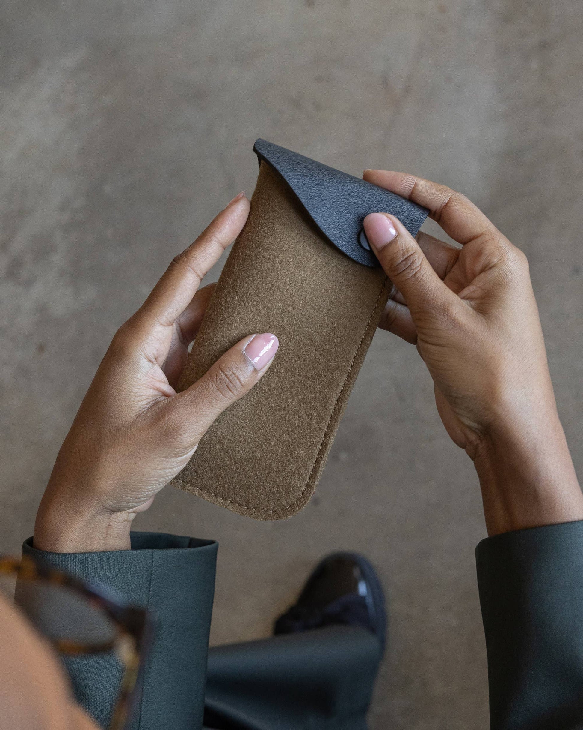 Keep your specs safe and sound in our colorful Merino wool eyeglass sleeve - now featuring a simple leather flap and single snap closure to make extra certain your glasses are there and scratch-free when you need them most.