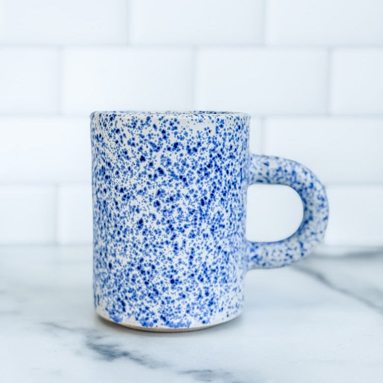 Deep cobalt tones layered with fine speckles give the Indigo Dust Mug its moody, textured charm—like stargazing through a dusted twilight sky. Hand-thrown in Portland, Oregon, each stoneware mug holds approximately 12–14 oz and features a smooth, rounded handle for everyday comfort. A striking blend of rustic and refined, perfect for your favorite brew.