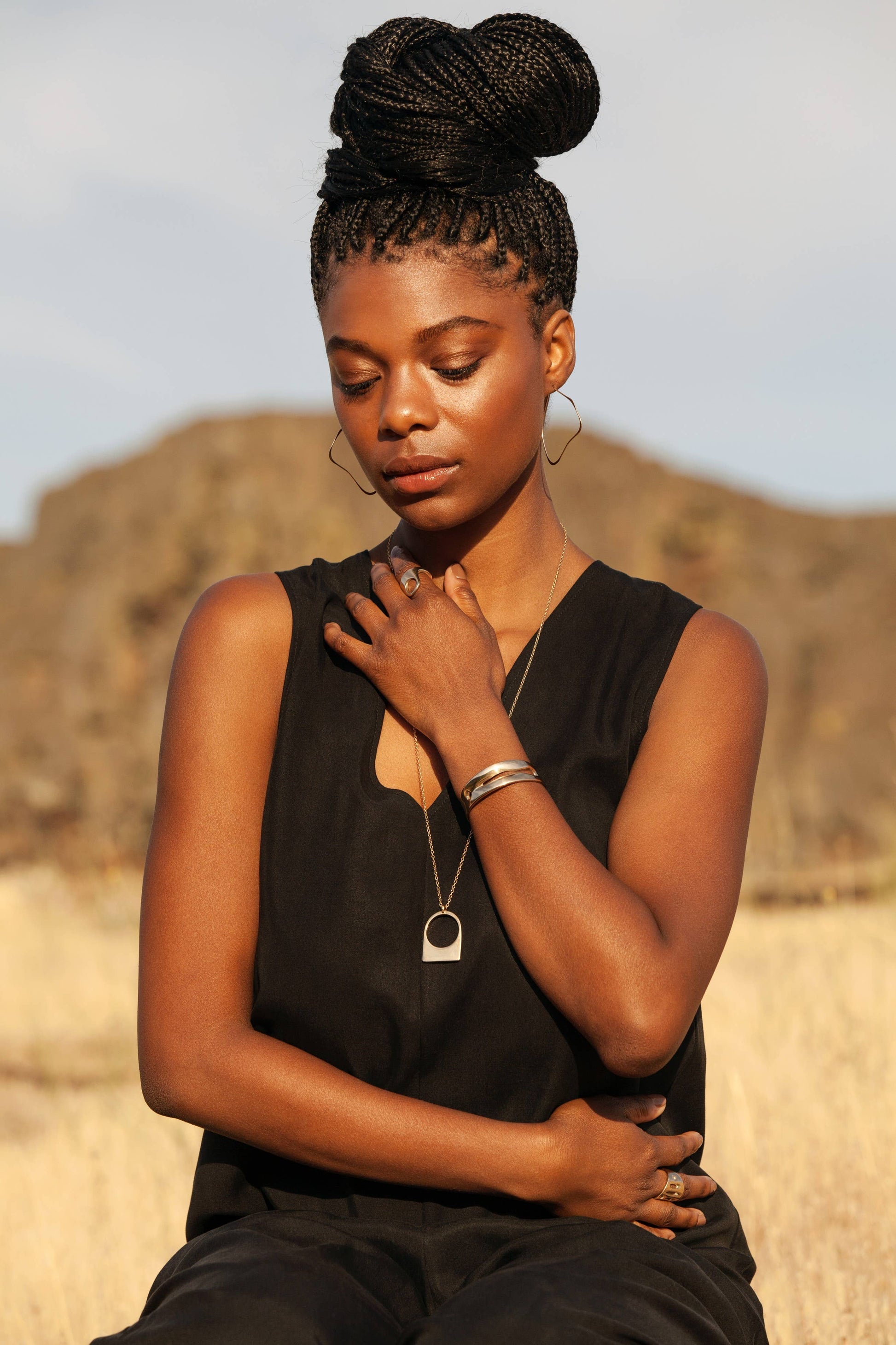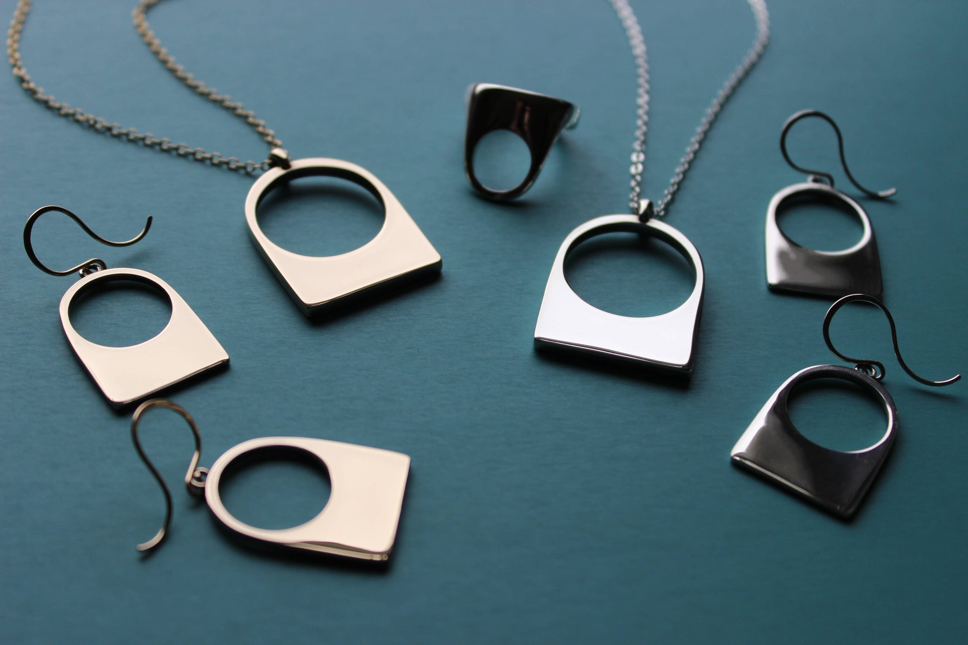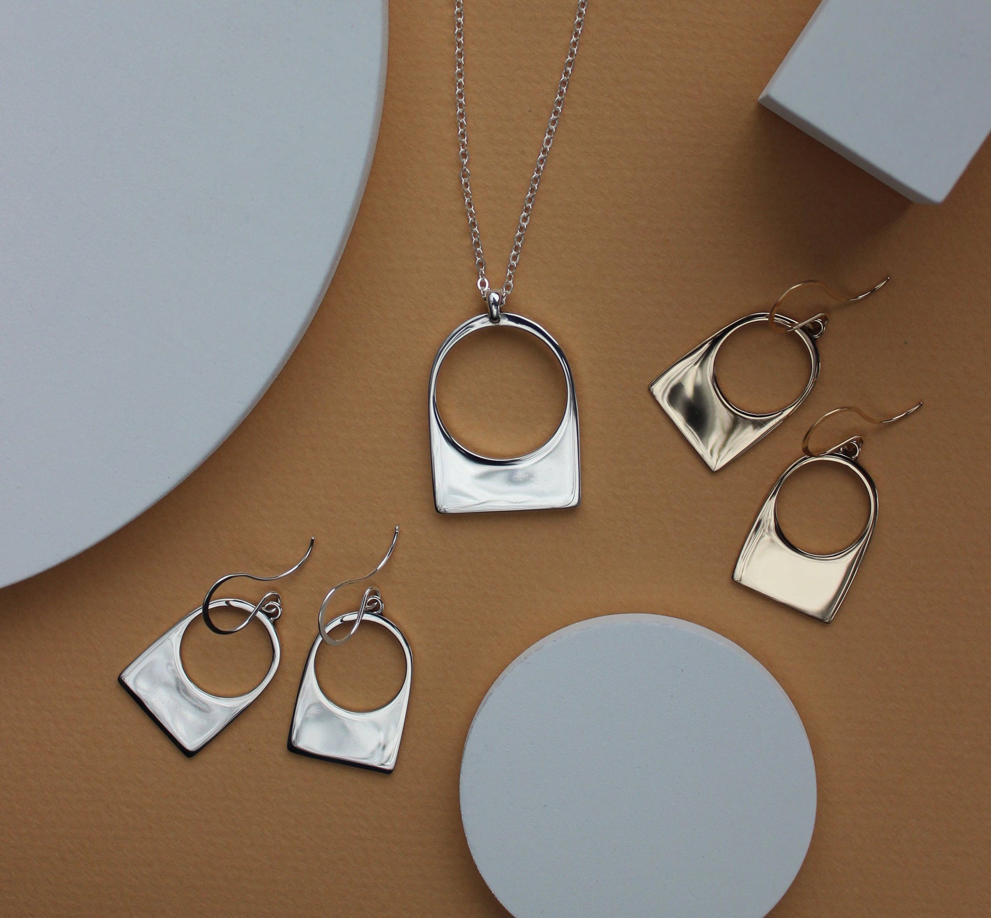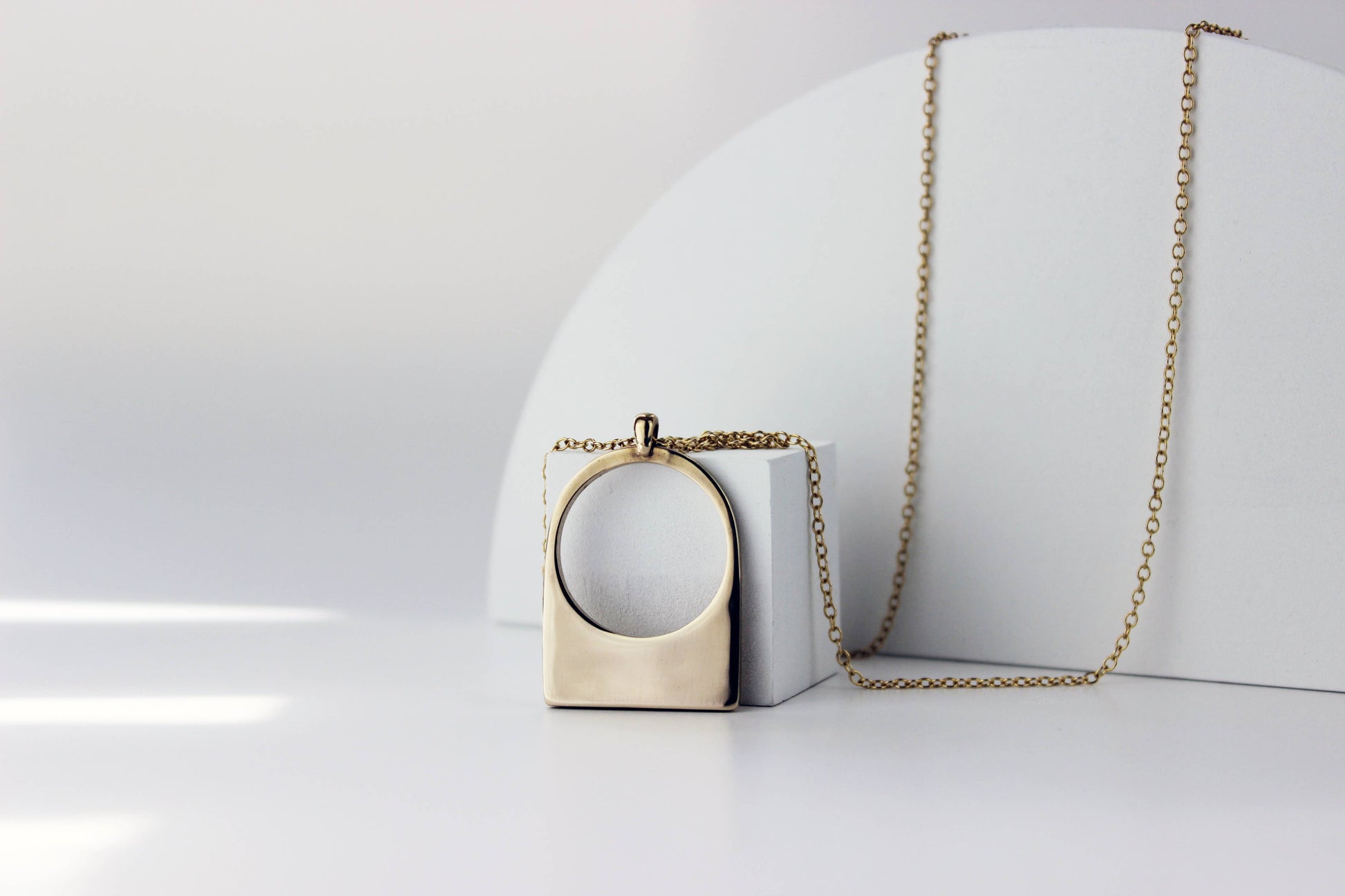 Architectural statement pendant, sculpted and carved in wax by hand and cast via lost wax casting.