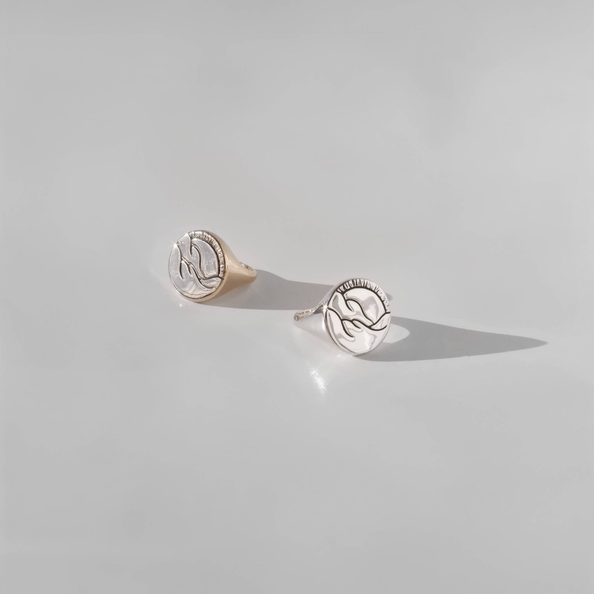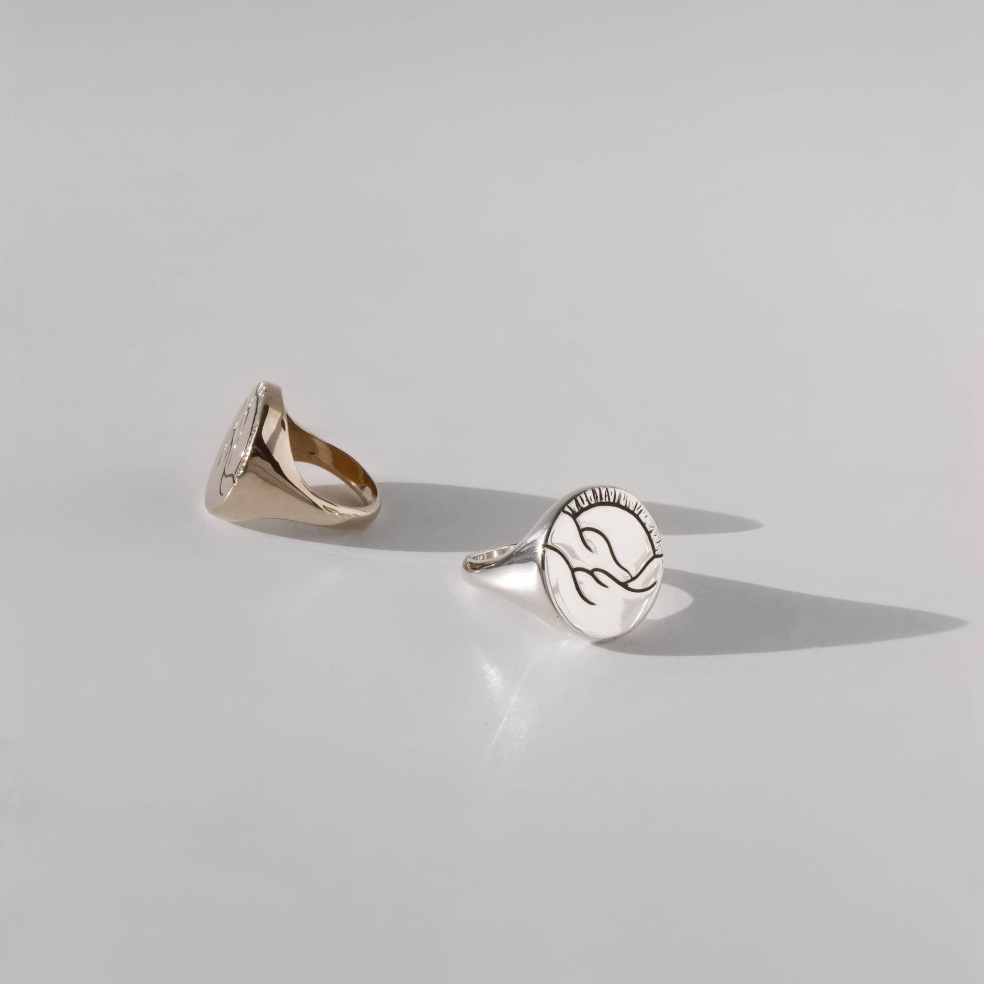 Bold, timeless, and full of character, this ancient-inspired ring is handcrafted in-house using the traditional lost wax casting technique—a centuries-old process known for its precision and durability. Available in your choice of yellow bronze or sterling silver, each casting offers a rich, weighty finish that makes a statement.