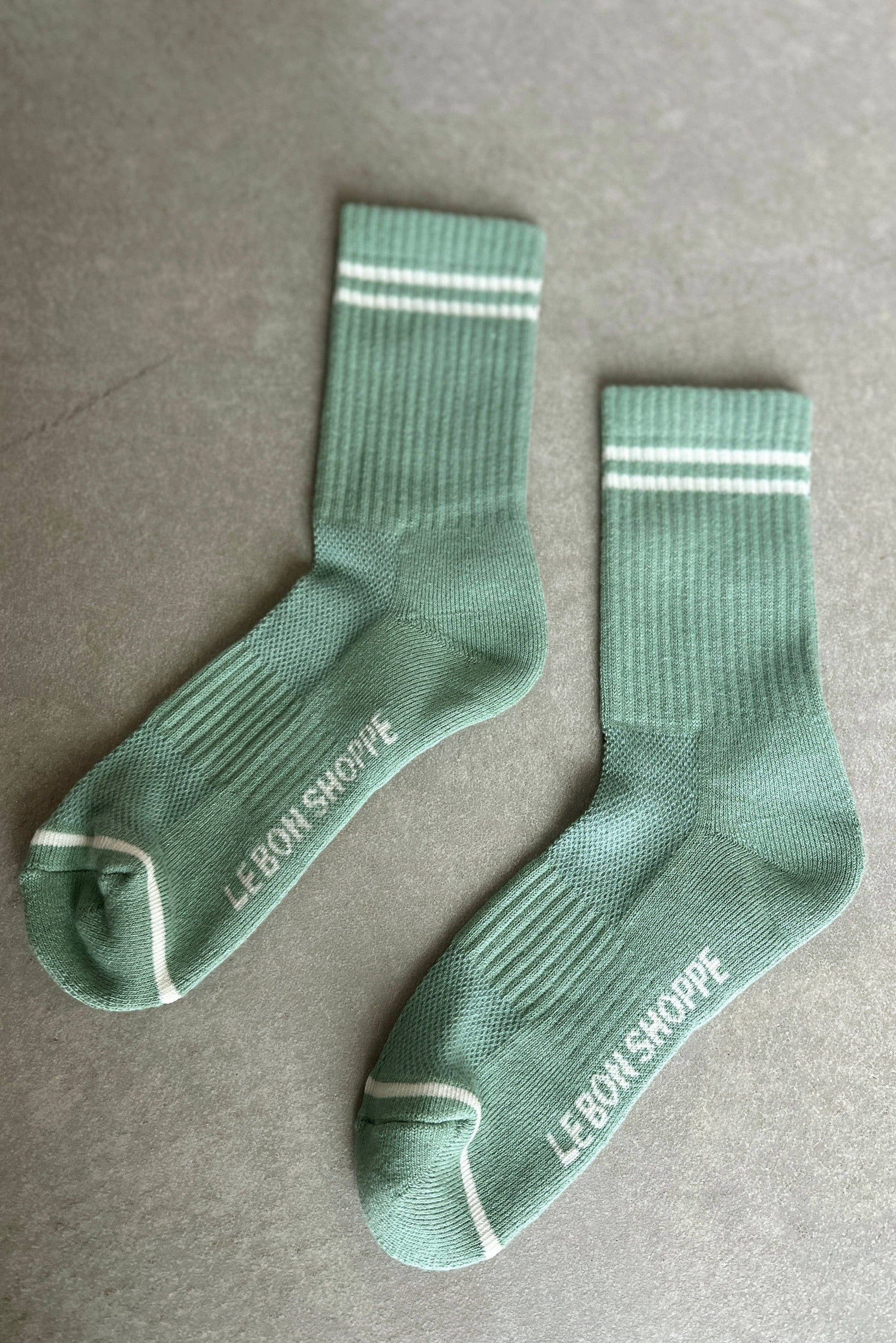 Why We Made This? The Boyfriend Sock is one of our signature styles and a year round bestseller. She is the perfect mix of function and fashion creating an effortless sporty vintage charm to any outfit. She is slightly longer than a classic crew and has a contrast double stripe. Durable and comfortable she upgrades any outfit. One of our go-to pairings well-worn denim and Converse chucks. We are obsessed and over at the Le Bon Shoppe HQ you can find her on a pair of happy feet nearly 365 days a year. We don't like to play favorites so shhh don't tell anyone but this girl has a special place in our heart! Made in South Korea Contents: 85 Cotton 13 Polyester 2 Spdx Sizing: One size fits most (US women's size 6-10) Care Instructions: Machine wash cold Tumble dry low Do not iron Do not bleach