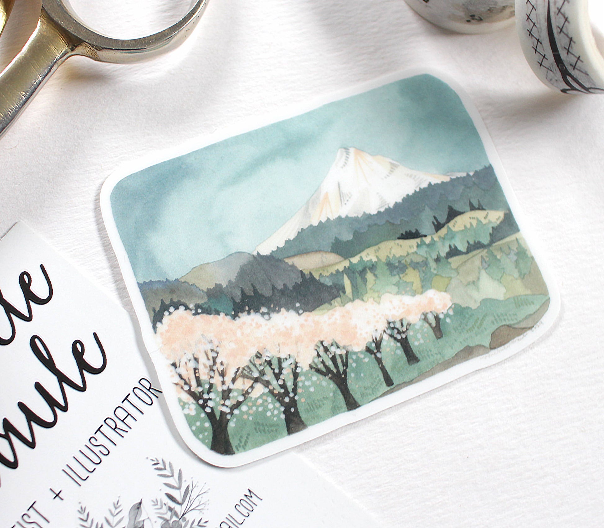 Hello! This is a listing for a single sticker with the image of Mt Hood and Cherry Blossoms. The image on the stickers was inspired by the town of Hood River, located in Oregon.