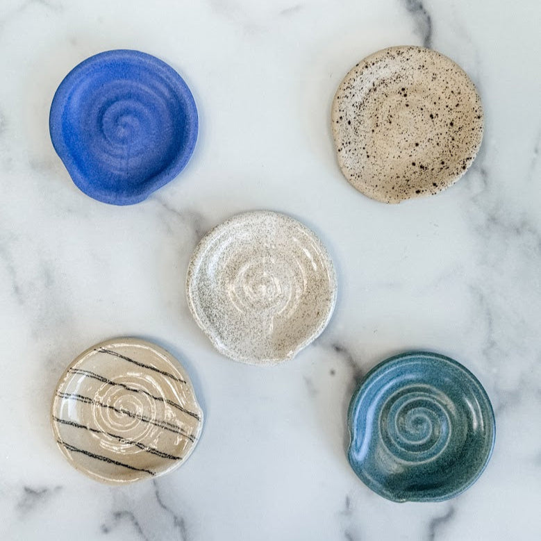 These tiny stoneware spoon rests are the perfect companion for your coffee or tea ritual—just the right size for a spoon or a resting spot for your tea bag. Choose from five different glaze finishes, each with its own unique character. Handmade in Portland, Oregon, they add a subtle, artisanal touch to your daily routine.