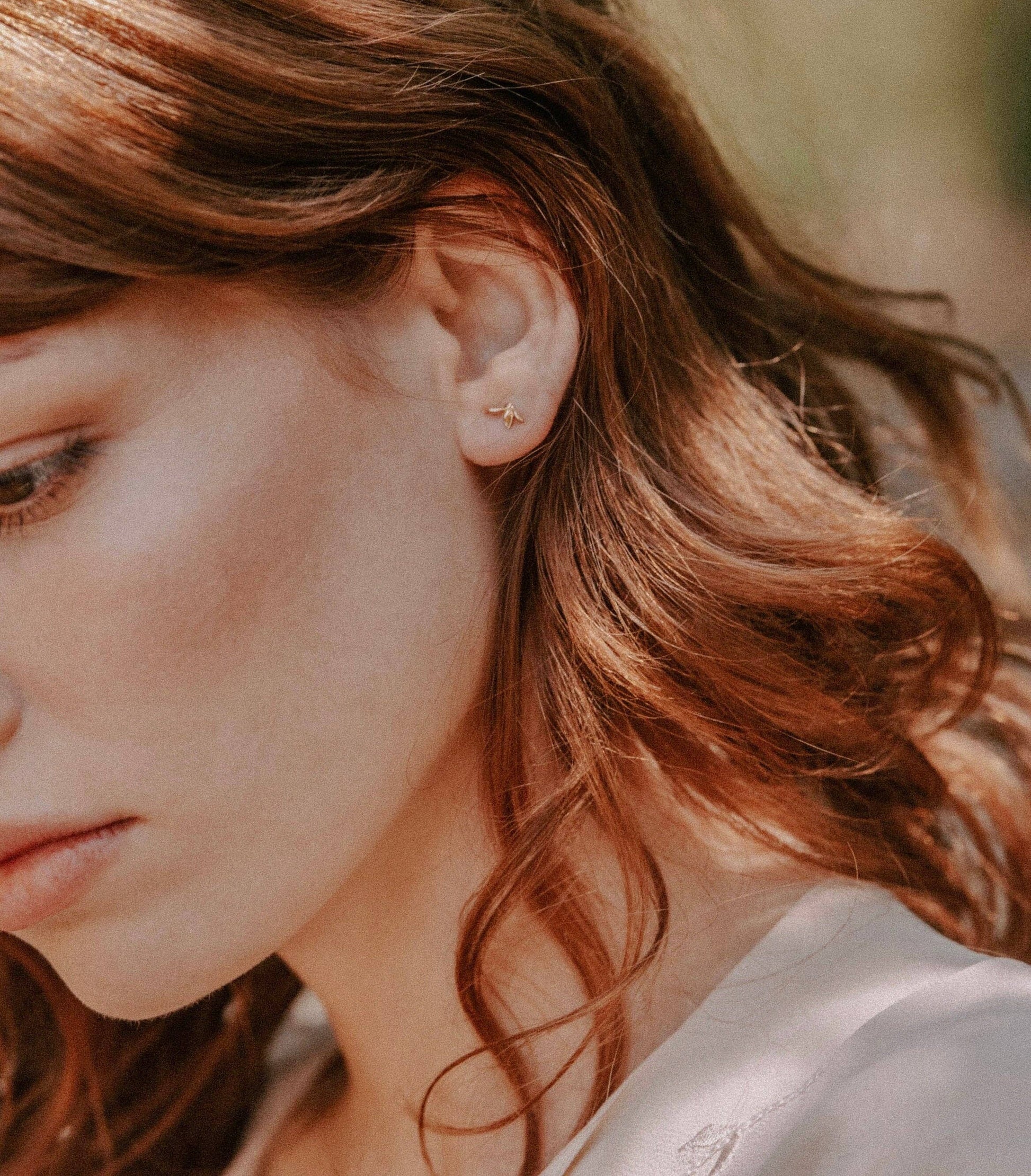 Delicate and timeless, these floral-inspired stud earrings in gold vermeil (14k gold over sterling silver) capture the elegance of a blooming flower in miniature form. Lightweight at just 0.4 grams and measuring 7 mm, they offer everyday comfort with a refined, feminine touch.