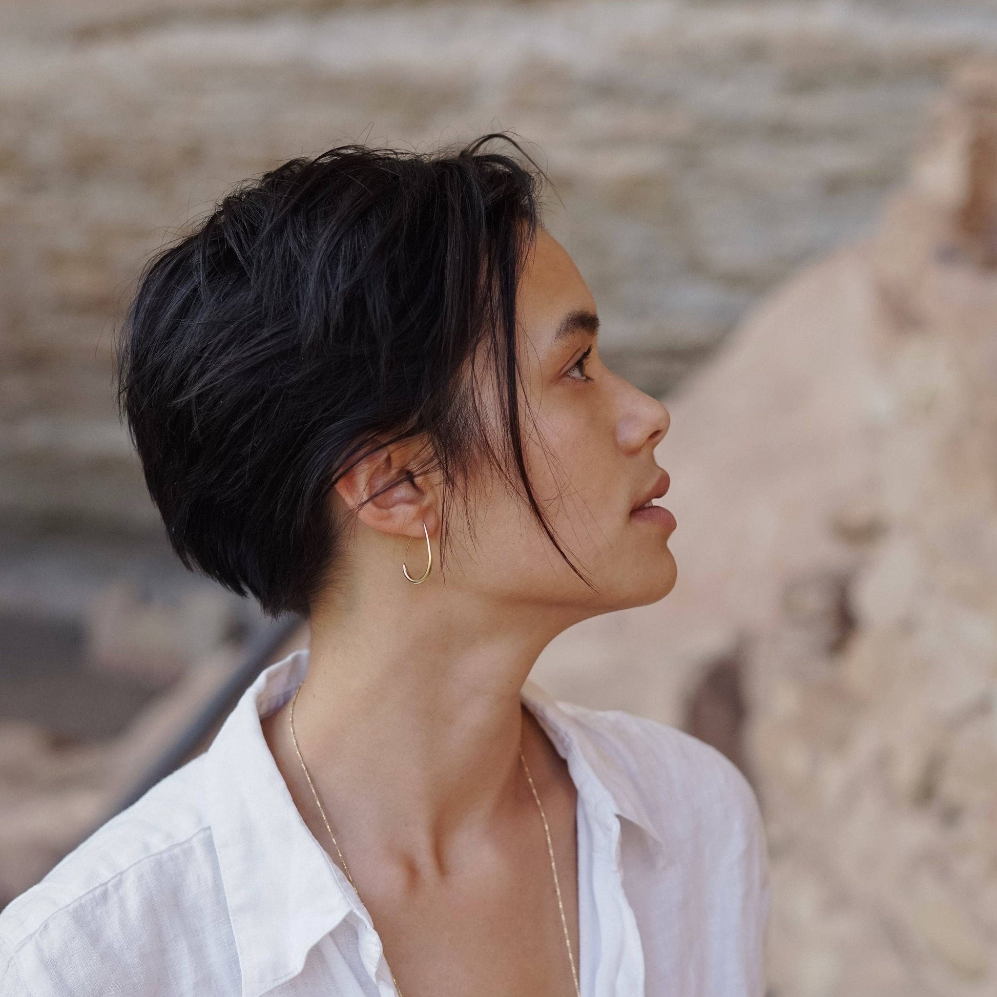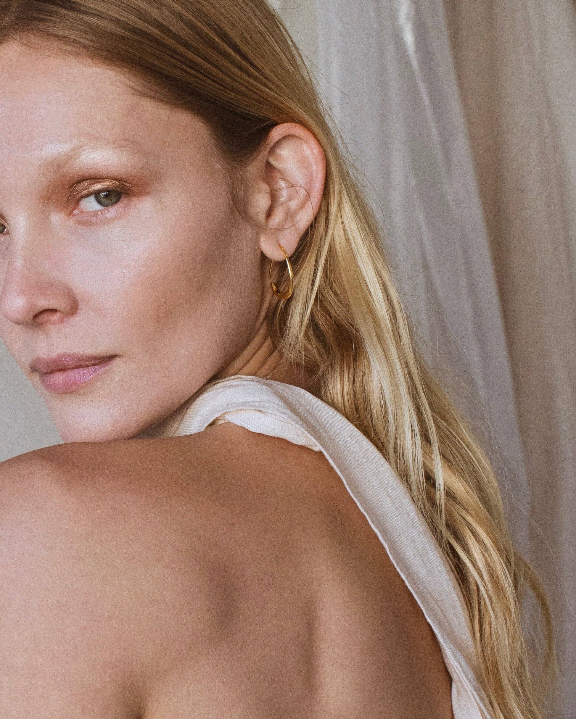 Reimagined in gold vermeil (14k gold over sterling silver), this modern interpretation honors their timeless elegance. Lightweight at 5.5 grams and measuring 26 mm, each pair is handcrafted in the USA from recycled metals, blending ancient influence with sustainable craftsmanship.
