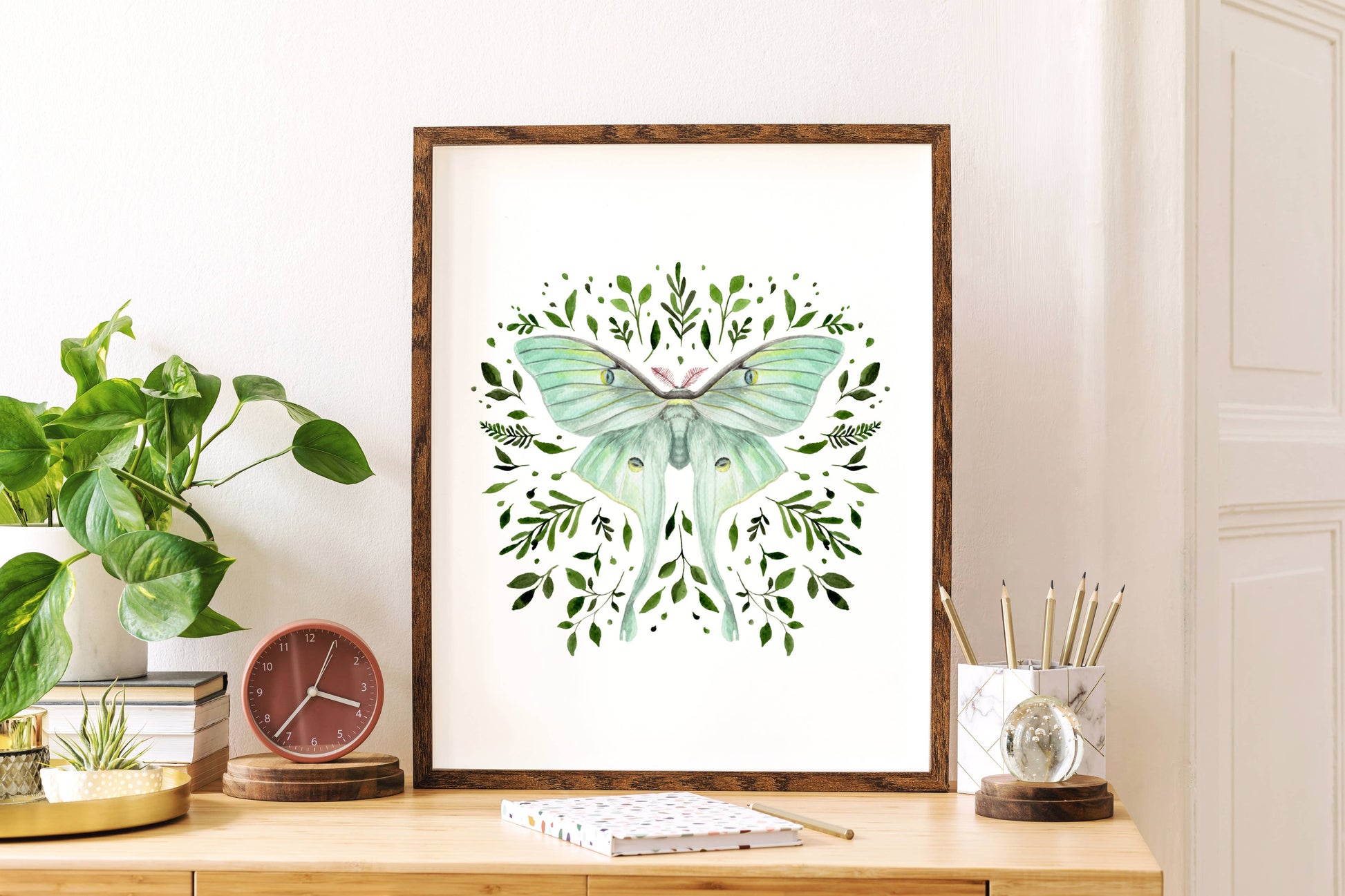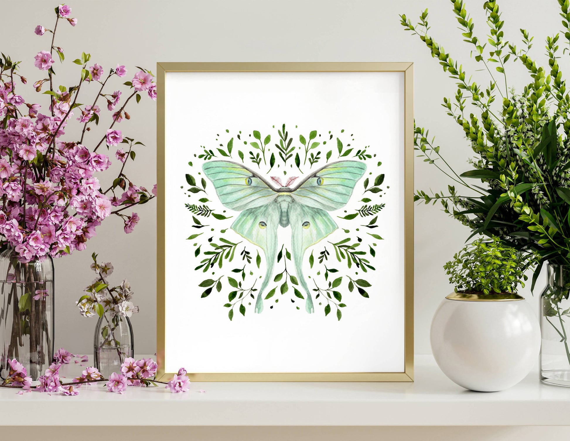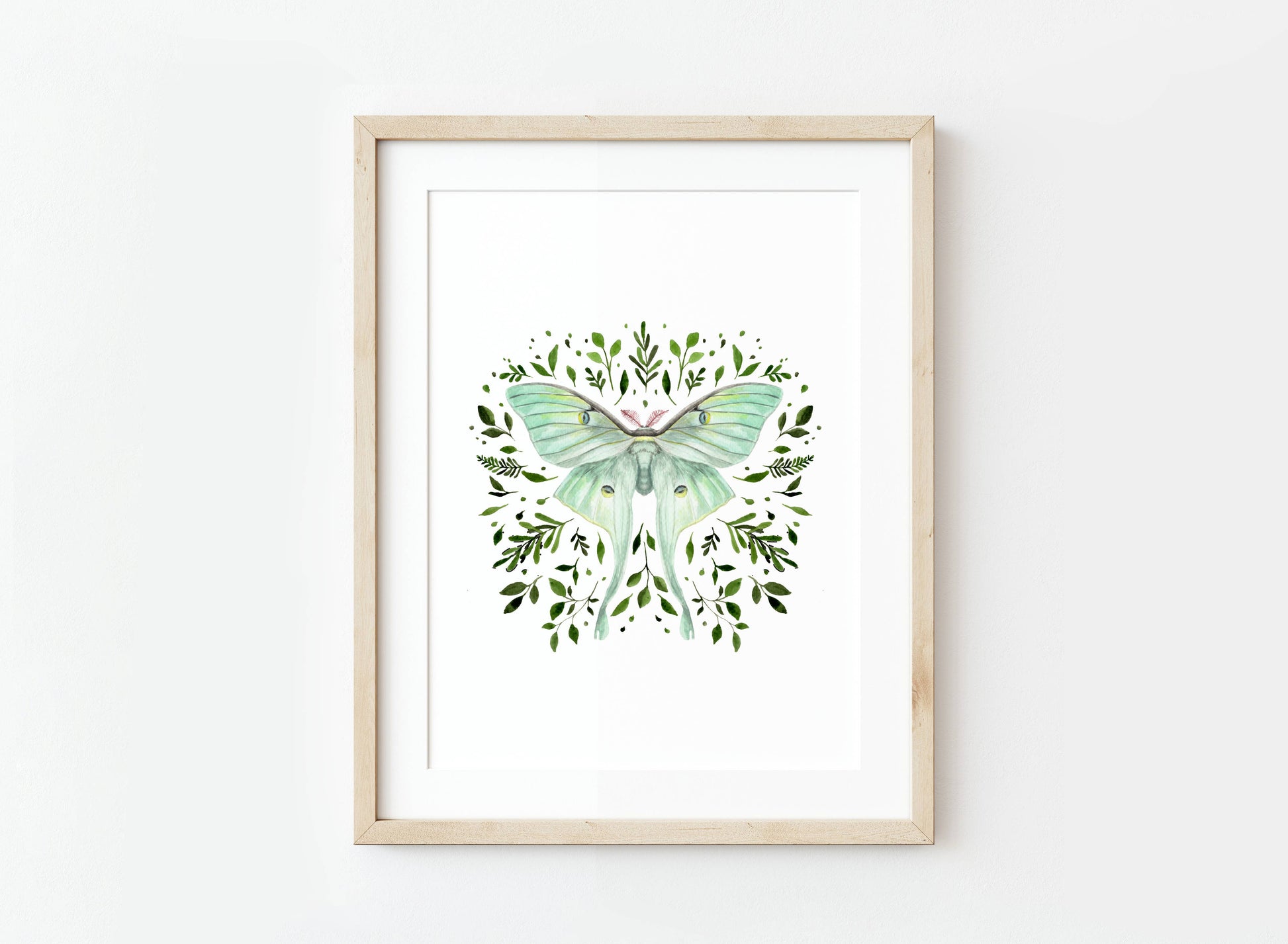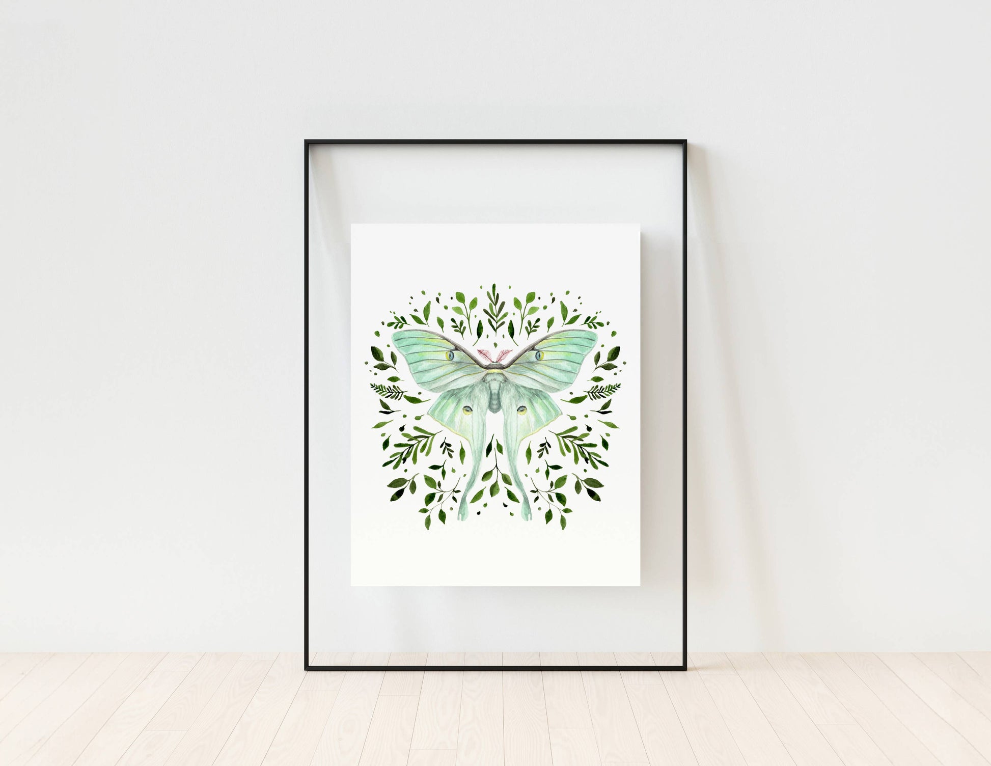 Luna Moth Watercolor Art Print – Nature-Inspired Wall Art