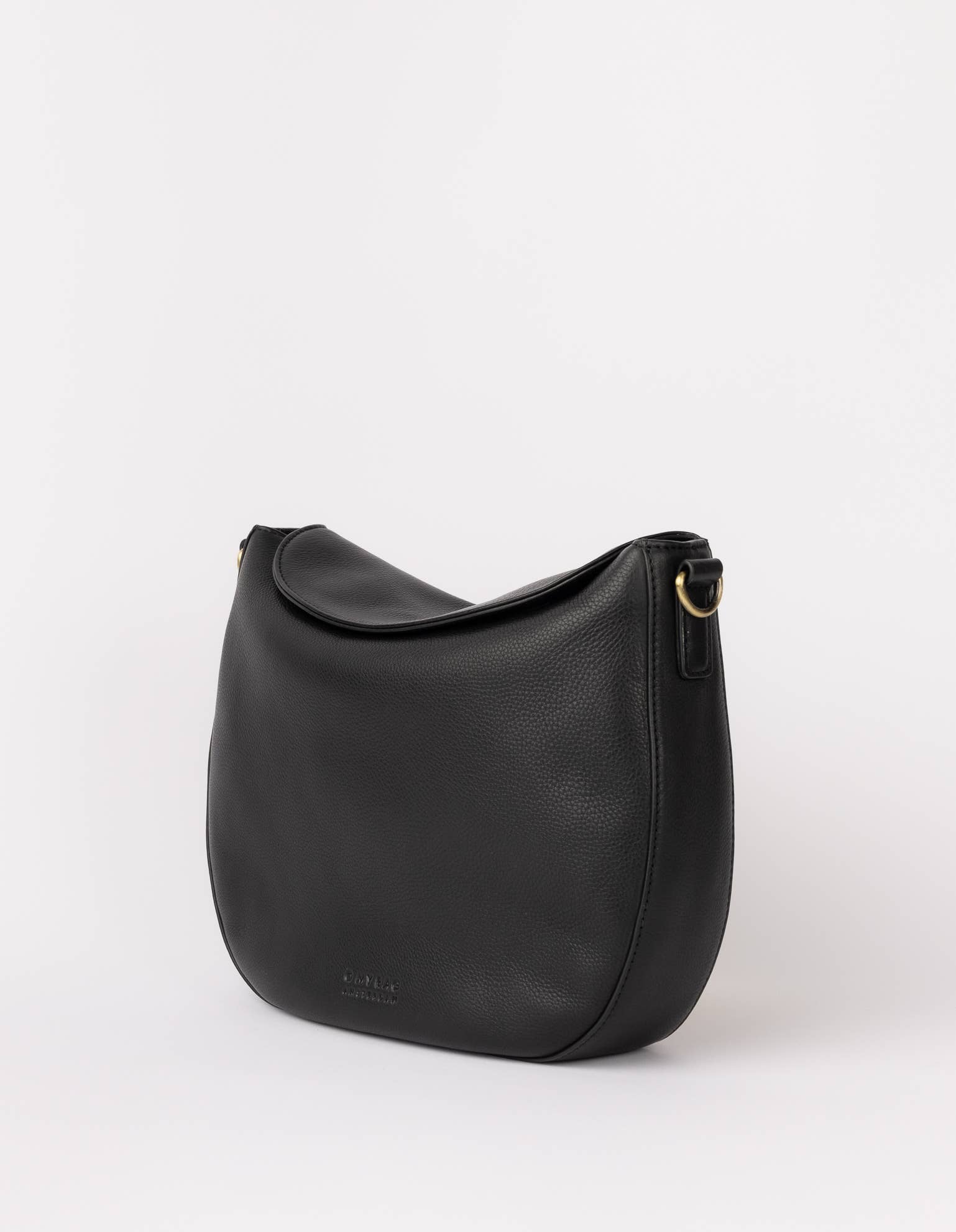 Lana has a round shape and that similar slouchy look to her bigger sister Sienna. Lana is the ideal medium-sized bag. It features a secure fold-over magnetic closure, an interior zipper pocket, a slip pocket and a key holder for convenience. Choose from the elegant, braided handle for a boho look or the crossbody strap for casual comfort.