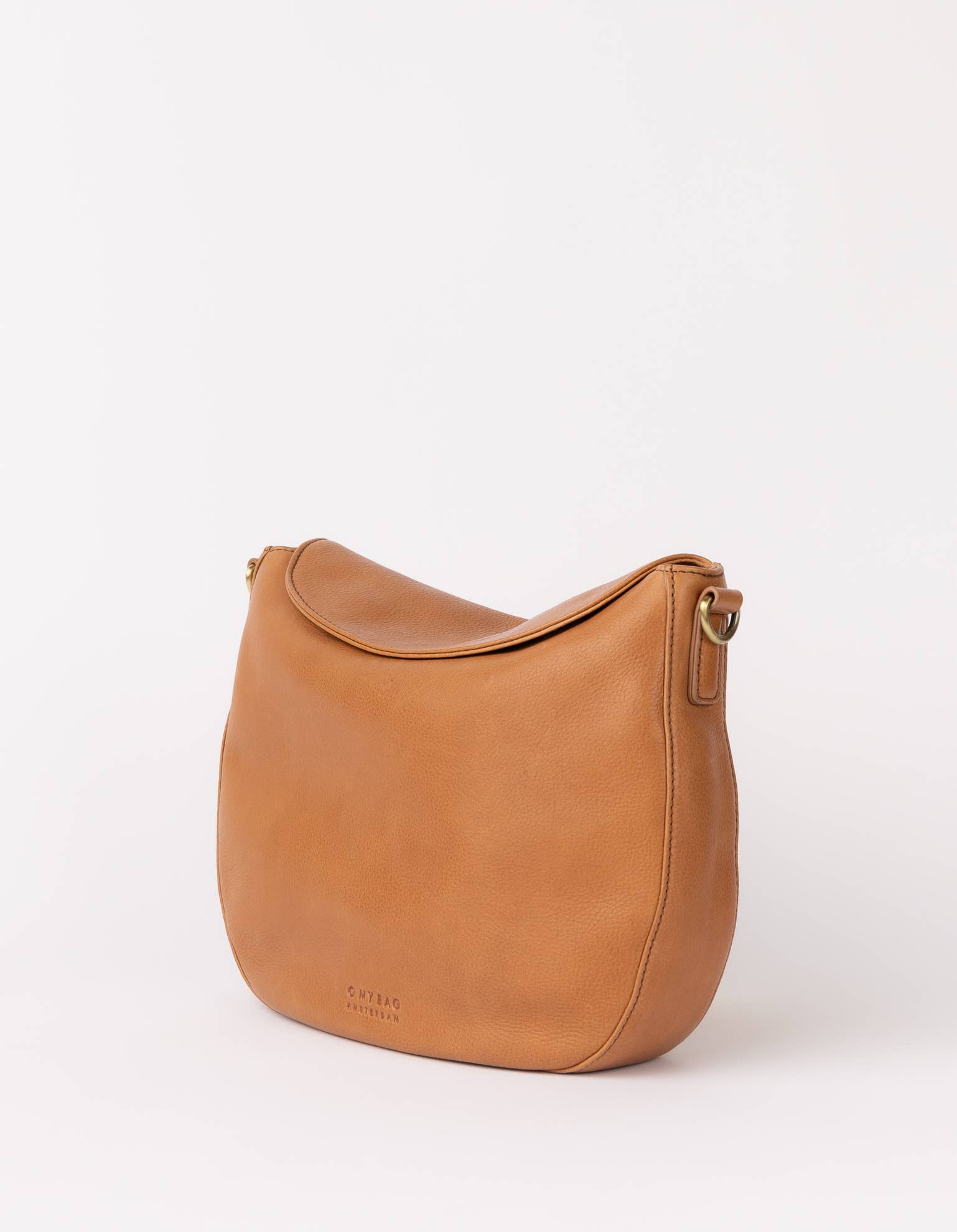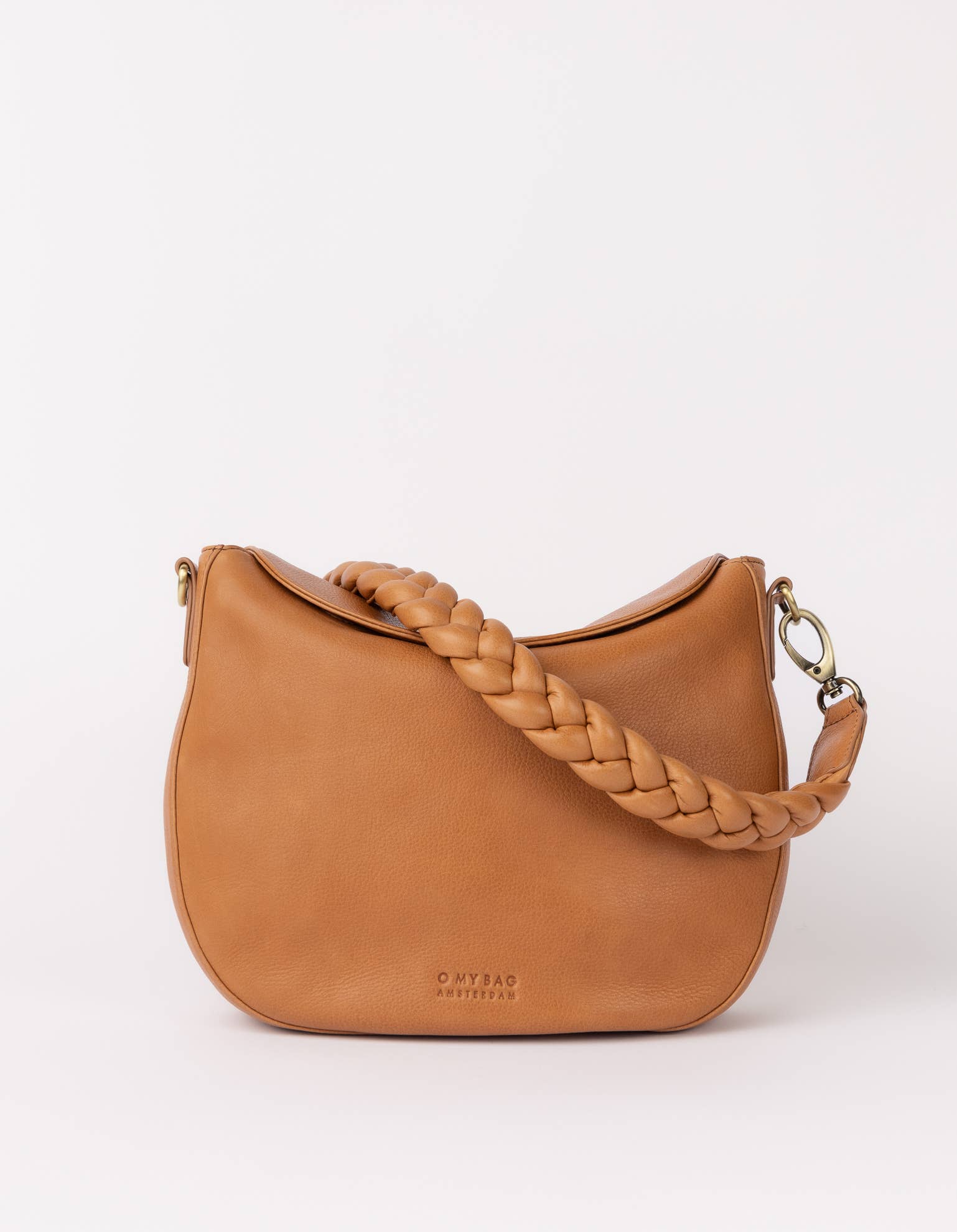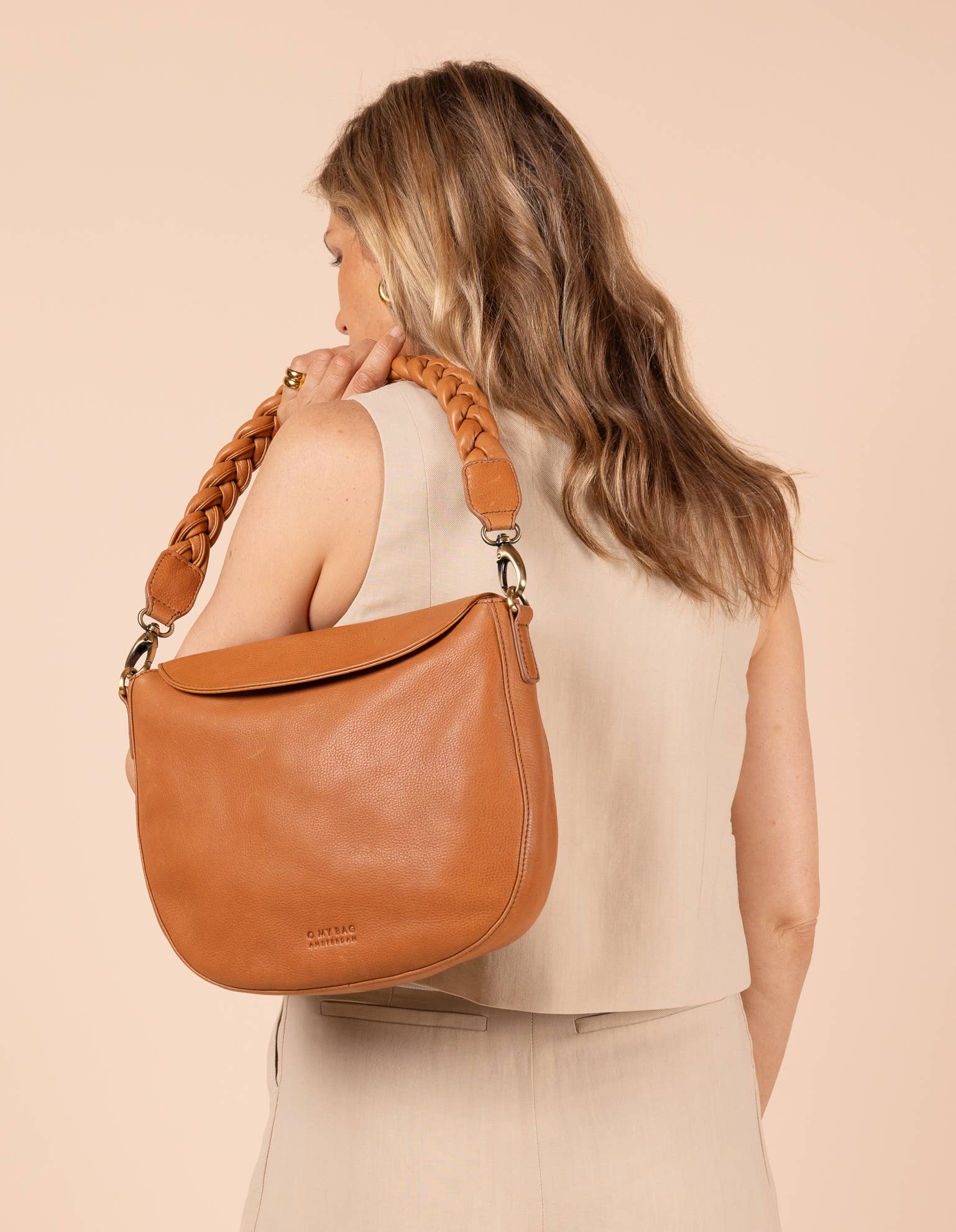 Lana has a round shape and that similar slouchy look to her bigger sister Sienna. Lana is the ideal medium-sized bag. It features a secure fold-over magnetic closure, an interior zipper pocket, a slip pocket and a key holder for convenience. Choose from the elegant, braided handle for a boho look or the crossbody strap for casual comfort.