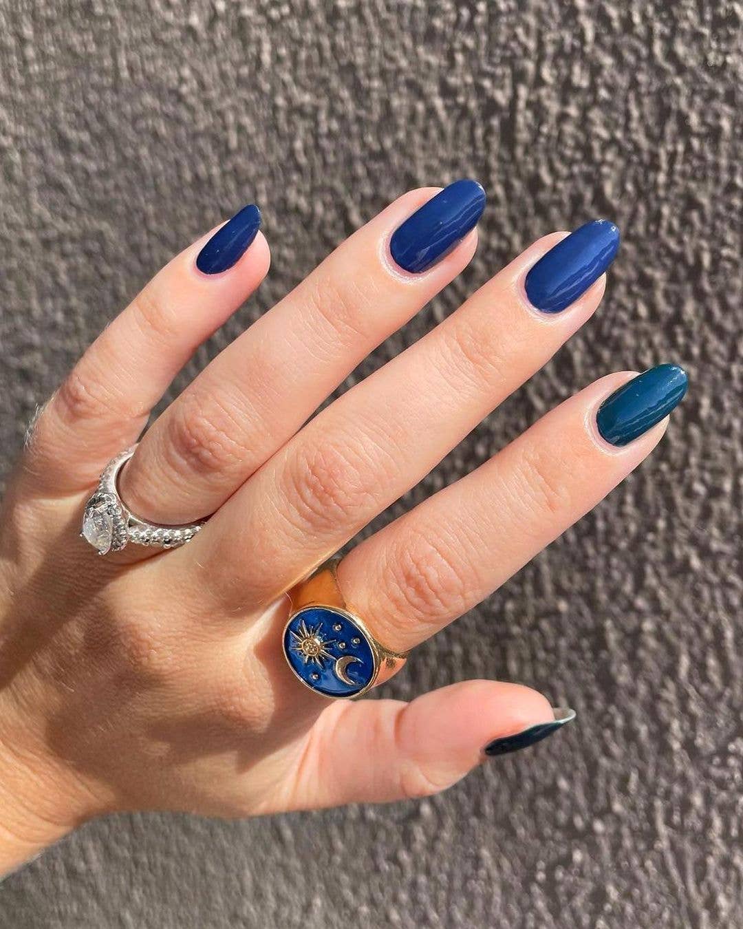 This listing is for one full sized bottle of nail polish (0.5 oz/15 ml) in Blue Maize, a dark navy blue. All bottles come with 2 stainless steel mixing balls.