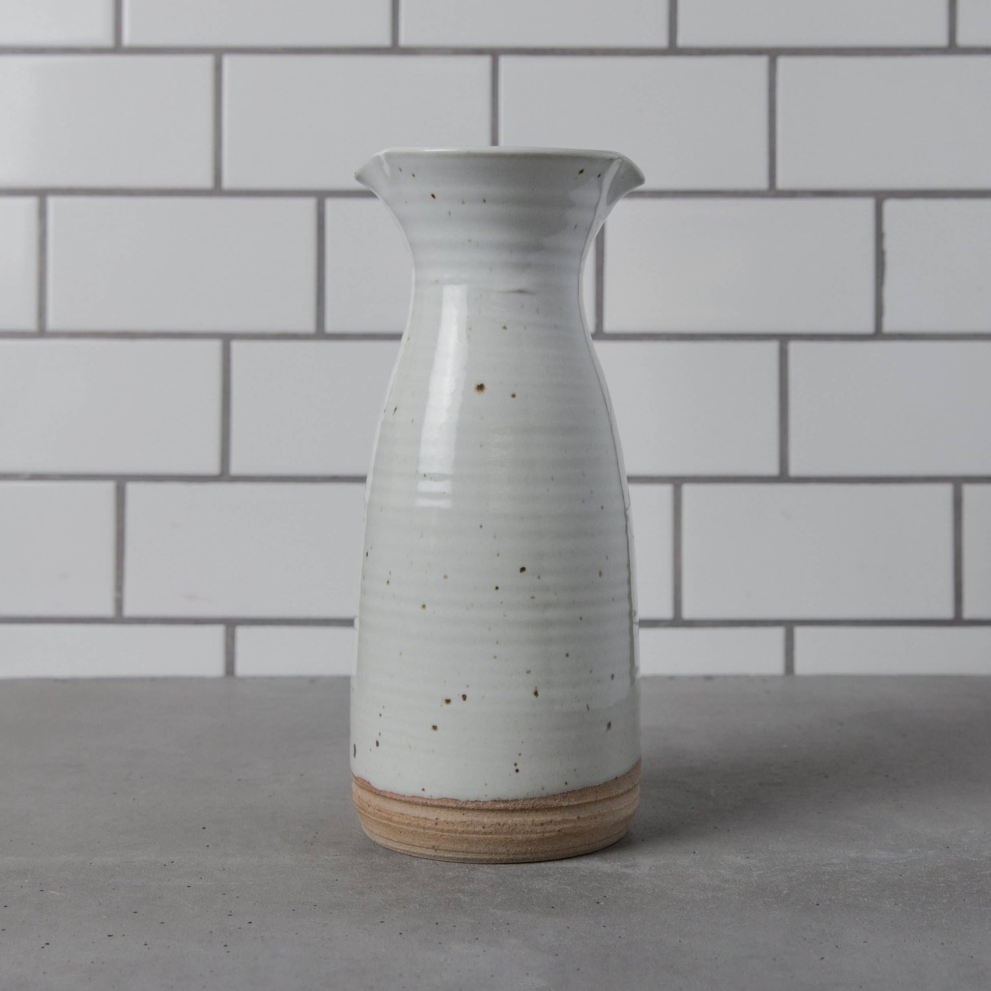 Versatile ceramic carafe, great for wine, sangria, or iced tea. We also love using these attractive vessels as flower vases. Approximately 4.5" wide by 8.5" tall. Holds about 30 ounces. Microwave, dishwasher, oven safe. Hand thrown, hand glazed. Expect slight variations in dimensions and color.