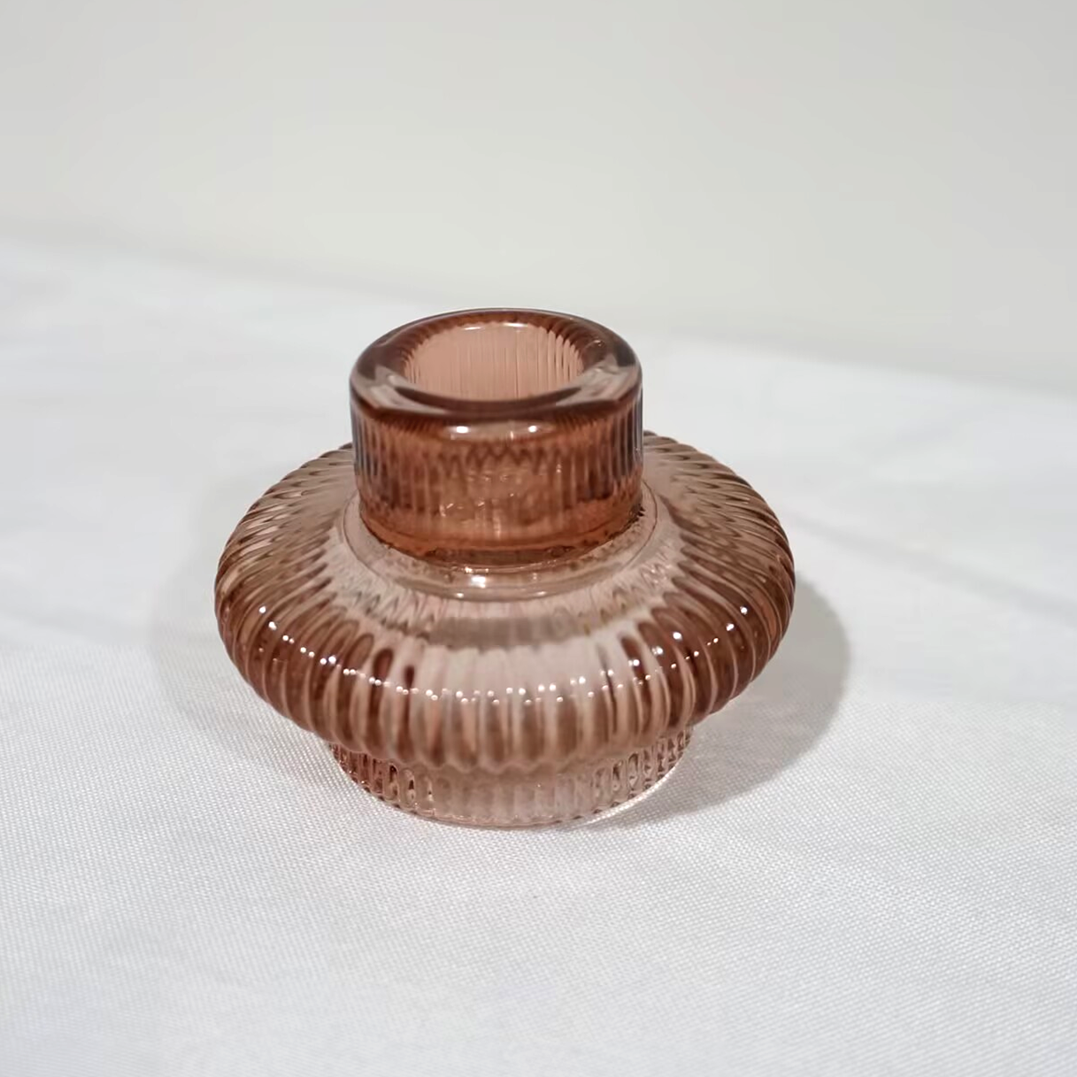 These versatile glass candle holders are designed to hold either standard ¾" taper candles or 1.5" tea lights—just flip them over to switch between styles. Each holder measures 3" wide x 2.25" tall and can be stacked for added height or used individually for a charming clustered look. Made from durable soda-lime glass, they’re heat-resistant, scratch-proof, and beautifully ribbed to enhance candlelight.