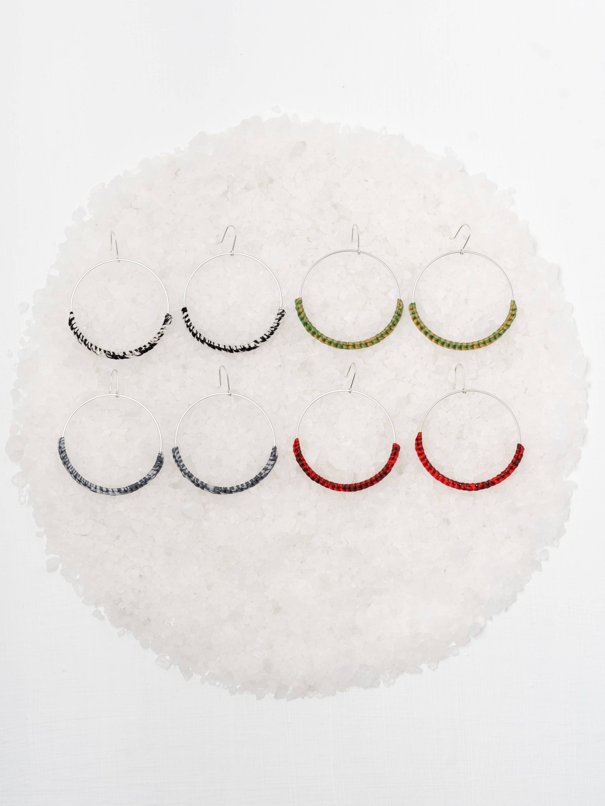 Our classic Macramé Hoop Earrings are back with a delightful update. Now featuring complementary colors, hand knotted in your choice of this season's stunning shades. A fan favorite of Twenty Two West each season, our Macramé Hoops are an incredibly lightweight classic, artful staple!