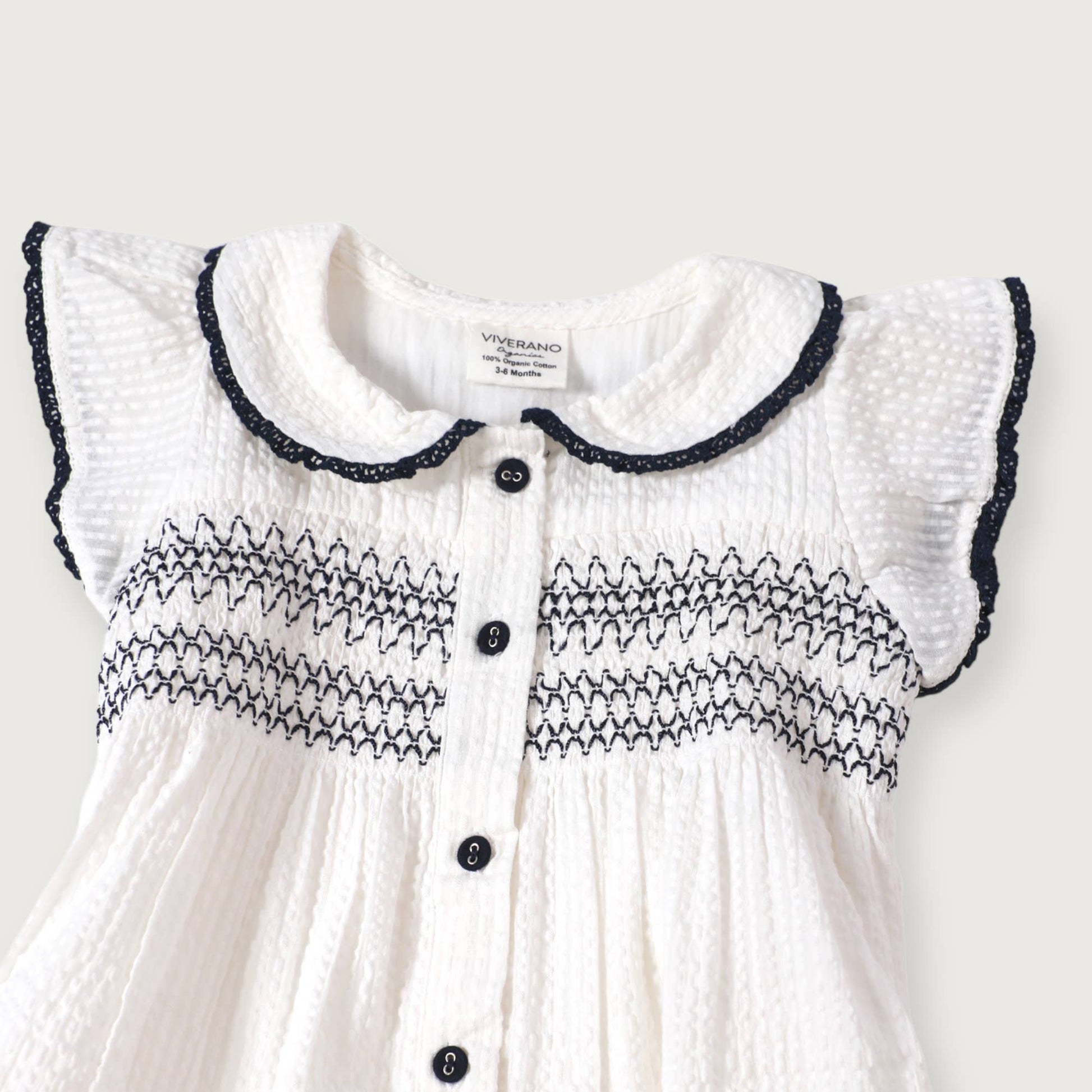 Celine White Seersucker Smocked Baby Dress + Bloomer Organic